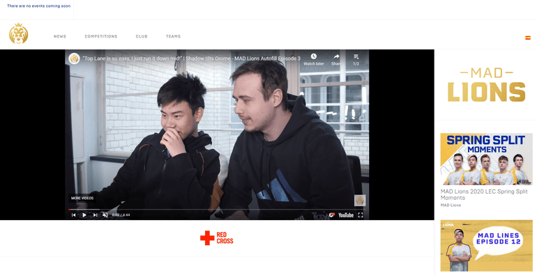 I am fairly sure this will be the worst site I see for a good while. While MAD Lions colours are gold and white, this is blinding. The lack of a good homepage, terrible right side video navigation, terrible masonry-style news setup and an unpopulated match section, leading to no reason for a fan to want to use this site. It’s a terrible first impression. Coupled with it being a slow site, MAD Lions won’t be given a chance. It’s a shame because they have good content and social team but this website does nothing to help build from it. Given the importance of merchandise sales to esports teams, it’s perplexing why MAD Lions do not even link their shop??