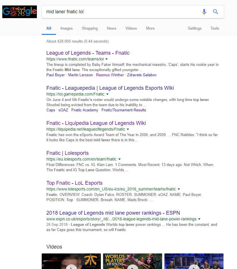 In this quick example, we’re going to see if their’s a direct page about Caps by inputting, mid laner fnatic lol as the search query.